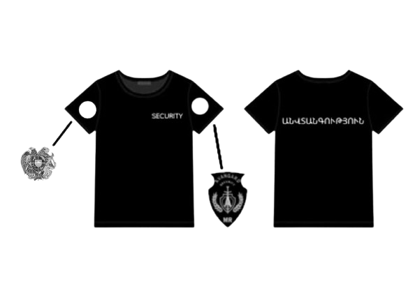 Վերնահագուստի (բաճկոն, վերնաշապիկ, պոլո շապիկ) հետևի մասում պետք է առկա լինի «ԱՆՎՏԱՆԳՈՒԹՅՈՒՆ» գրվածքը, կրծքի կողմում՝ «SECURITY» գրվածքը և աշխատակցի ազգանունը:
